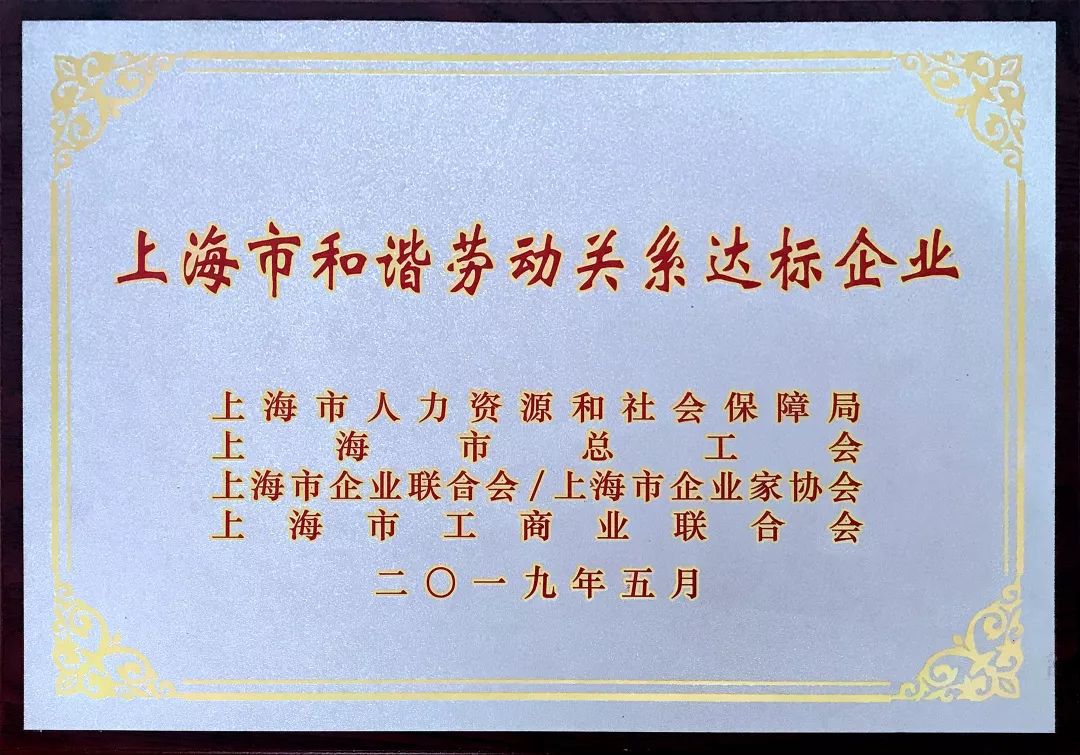 近日,鈺翔環保供應鏈管理(上海)有限公司被上海市人力資源和社會保障局、上海市總工會、上海市企業聯合會/上海市企業家協會、上海市工商業聯合會聯合授予“上海市和諧勞動關系達標企業”。